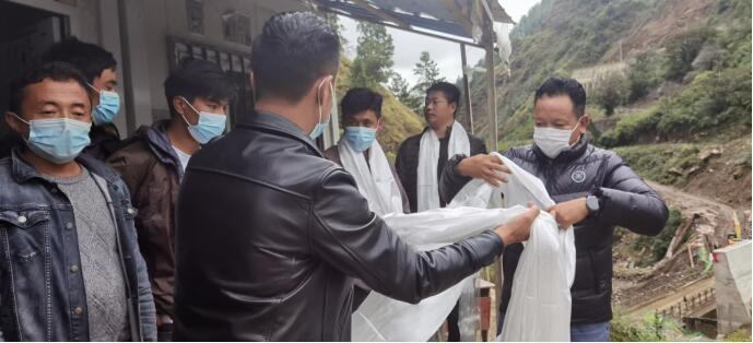 疫情無情,企業(yè)有愛。在抗擊疫情面前,愛心不論大小,善舉不分先后。10月18日,帶著對防疫一線卡點工作人員的深深牽掛,我們西藏圣凈環(huán)保服務有限公司董事長及團隊在吉隆鎮(zhèn)走訪慰問邊境疫情防控各卡點工作人員。為防疫一線工作人員送去了礦泉水、紅牛、方便面等慰問品。